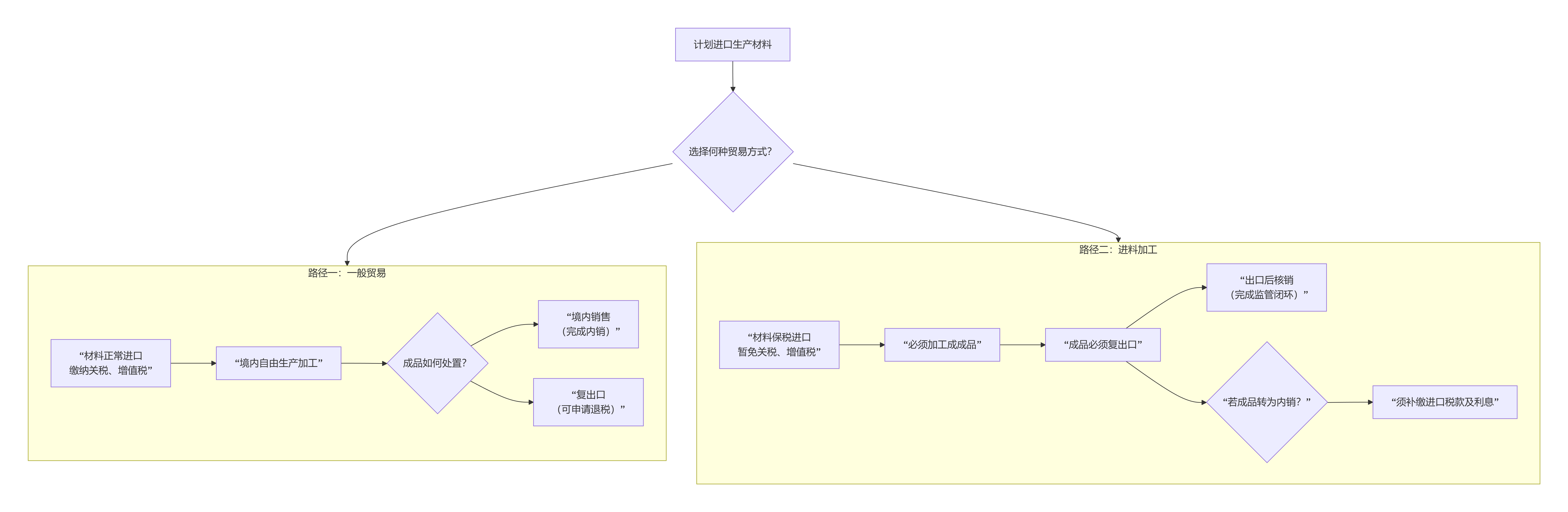 从上图可以清晰地看到,两种路径在税务处理、成品流向和监管要求上存在根本差异。